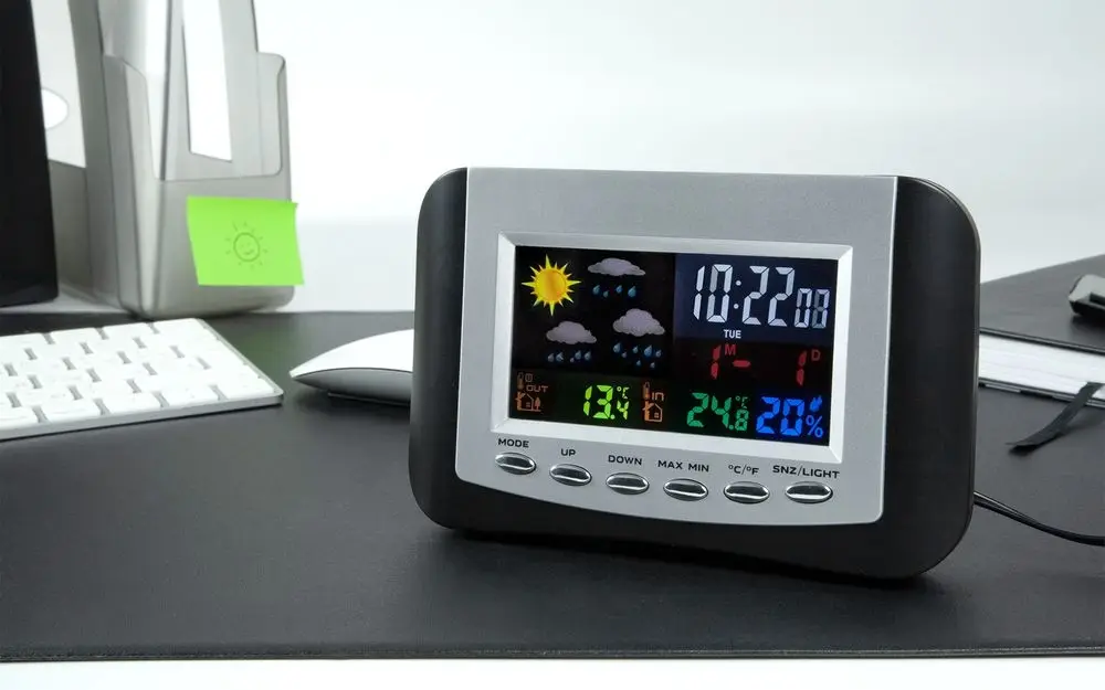 Метеостанция с цветным дисплеем и выносным датчиком точно покажет погоду в доме и за окном.