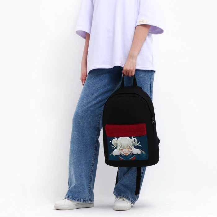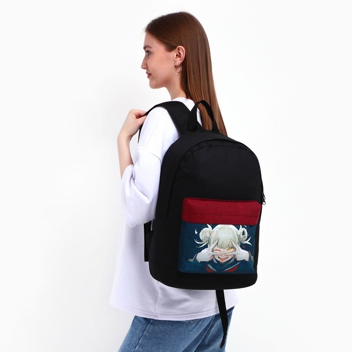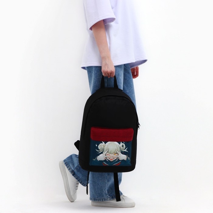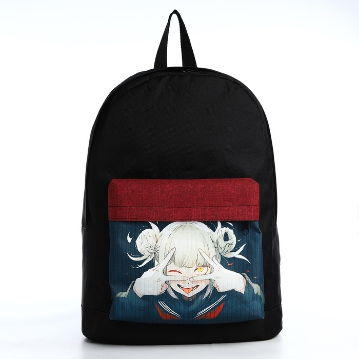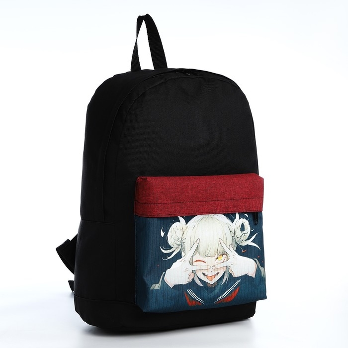 Рюкзак школьный молодёжный «Аниме», 33х13х37, отдел на молнии, н/карман, чёрный, красный