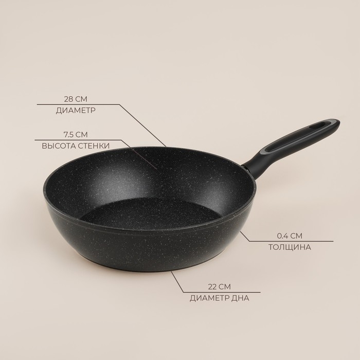 Сковорода алюминиевая с высоким бортом SL Home, d=28 см, h=7,5 см, антипригарное покрытие, индукция, цвет чёрный