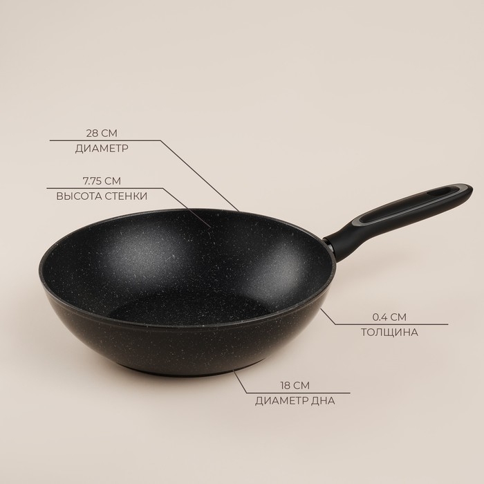 Сковорода Вок алюминиевая с антипригарным покрытием SL Home, d=28, h=7,5 см, индукция, цвет чёрный