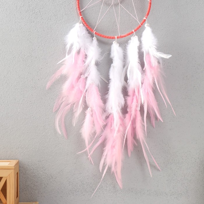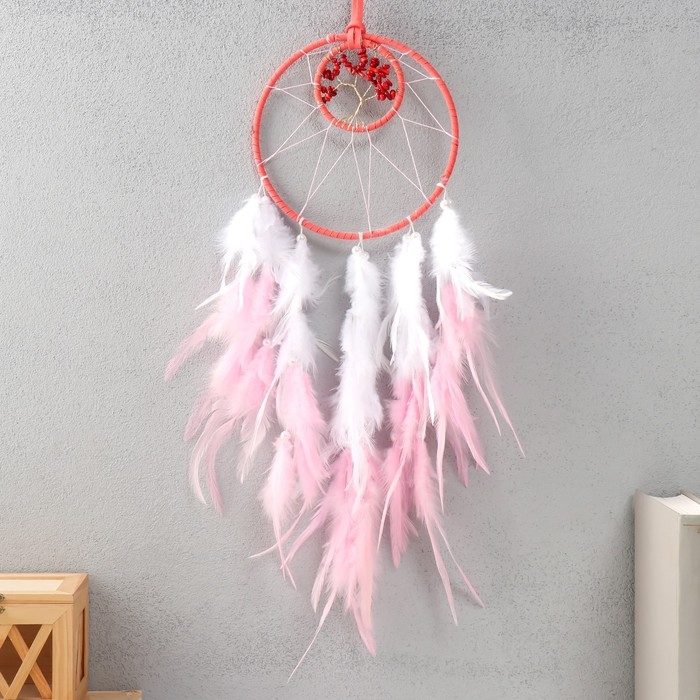 Ловец снов d=15,5 и 7 см "Деревце из камней" розовый с белым 60х15,5х0,7 см