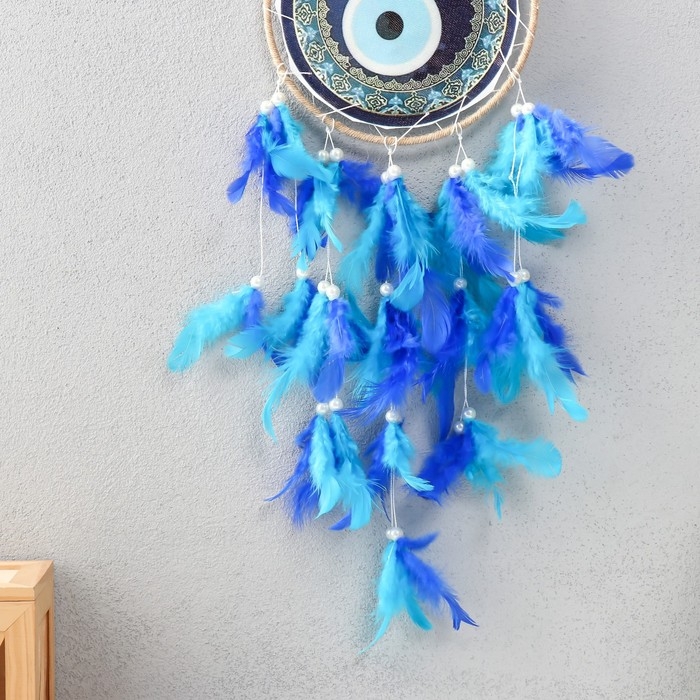 Ловец снов от сглаза "Сине-голубые перья" 60х15х0,7 см