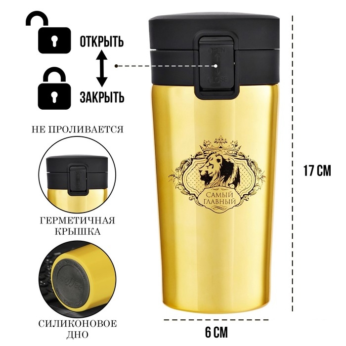Термокружка, 380 мл, Style "Самый главный", сохраняет тепло 8 ч, с ситечком
