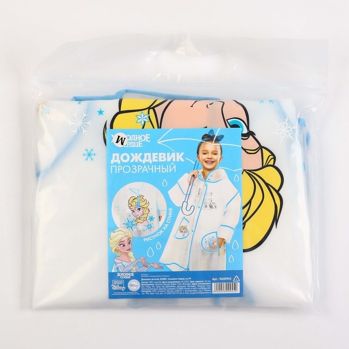 Дождевик детский, размер M, 100-110 см, Холодное сердце