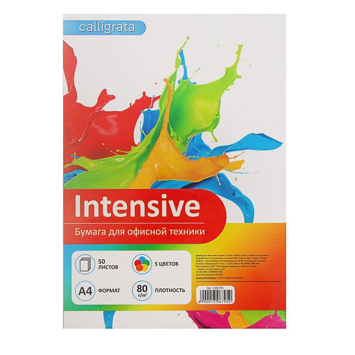 Бумага цветная А4, 50 листов Calligrata Интенсив, 5 цветов, 80 г/м²