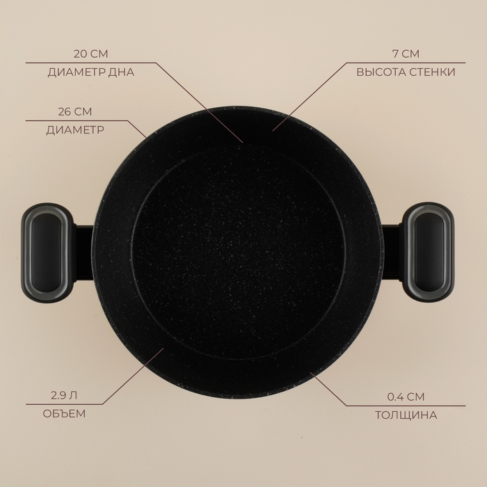 Кастрюля - жаровня алюминиевая SL Home, d=26 см, h=7 см, антипригарное покрытие, индукция, цвет чёрный