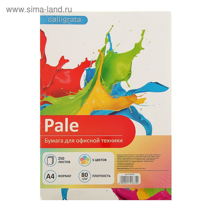 Бумага цветная А4, 250 листов Calligrata Пастель, 5 цветов, 80 г/м²