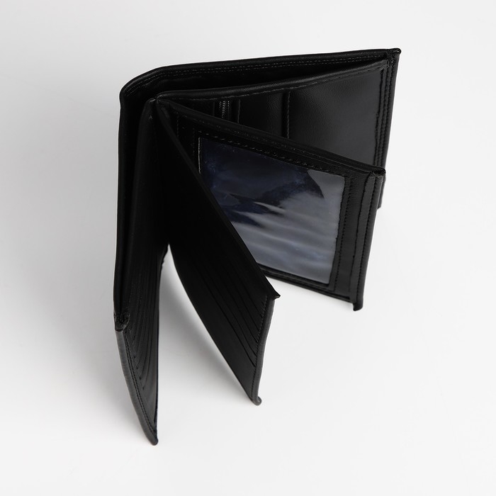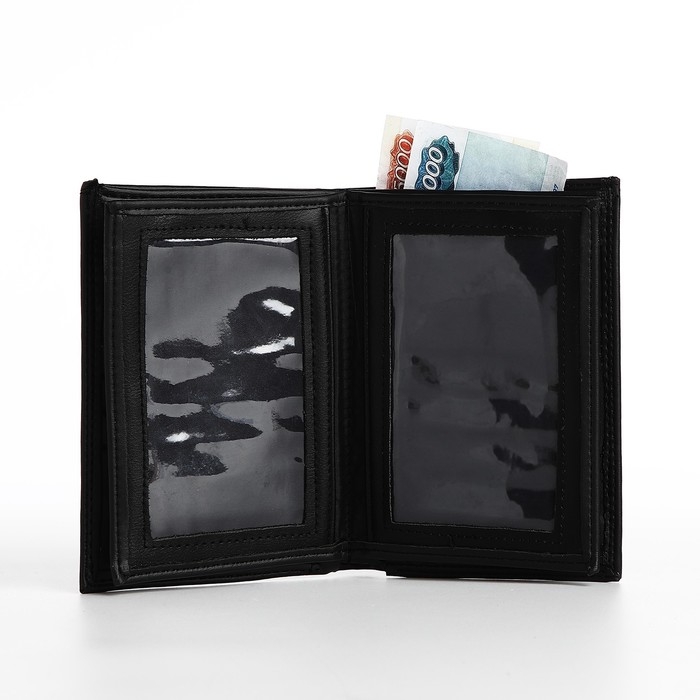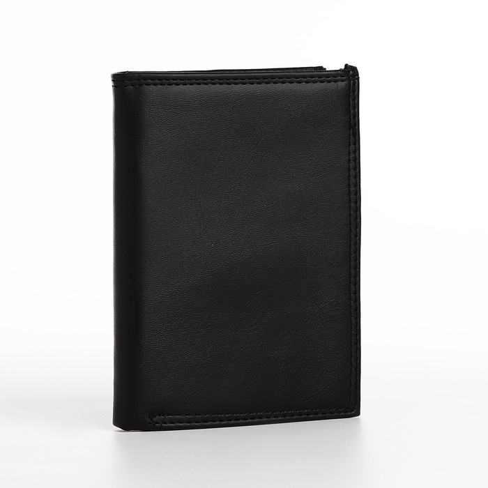 Портмоне мужское без застёжки, 3 в 1, отдел автодокументов, паспорта, карт, купюр, цвет чёрный