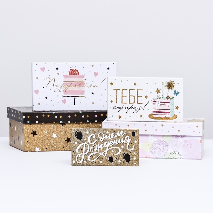 Набор коробок с интересным ярким дизайном поможет создать яркий и запоминающийся подарок, который приятно удивит получателя.