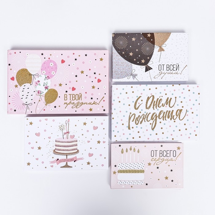 Набор шляпных коробок 5 в 1" Нежность" , 23 х23 - 15 х 15 см