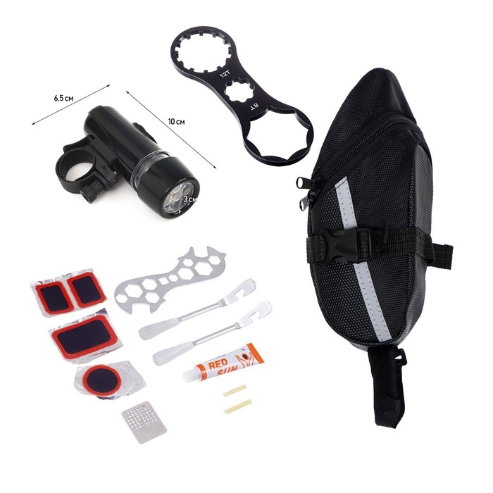 Набор для велосипеда 3 в 1: фонарь, ремонтный набор, сумка 20 х 20 х 27 см