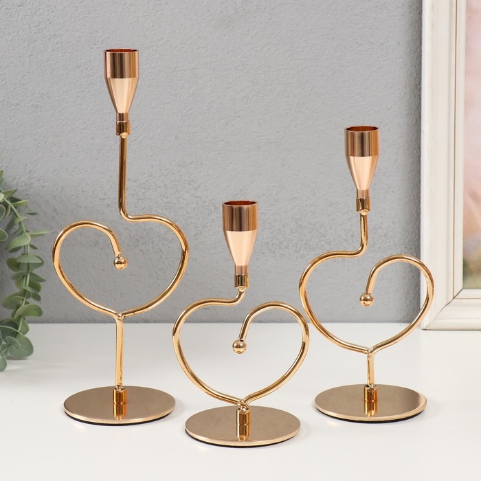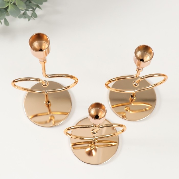 Подсвечник металл "Аврелия" набор 3 шт золото d=2см высота 26; 20,5; 16,5 см 9,5х8х26 см