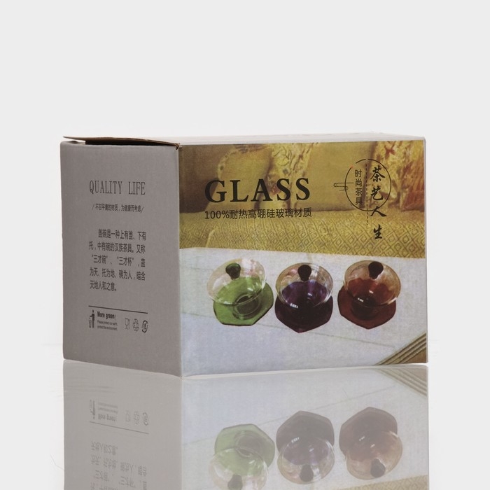Пиала для чая стеклянная «Гайвань», 250 мл, с подставкой и крышкой