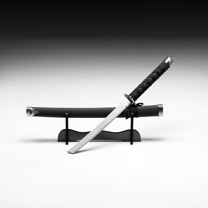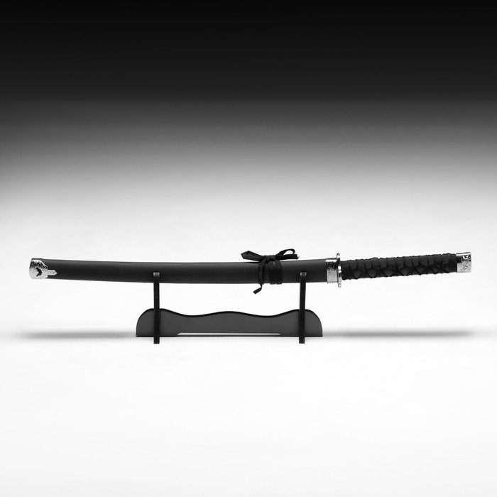 Сувенирное оружие «Катана на подставке», чёрные ножны ,матовая, гладкая 70см, клинок 31см
