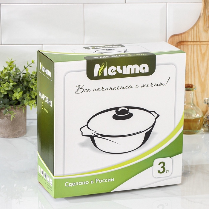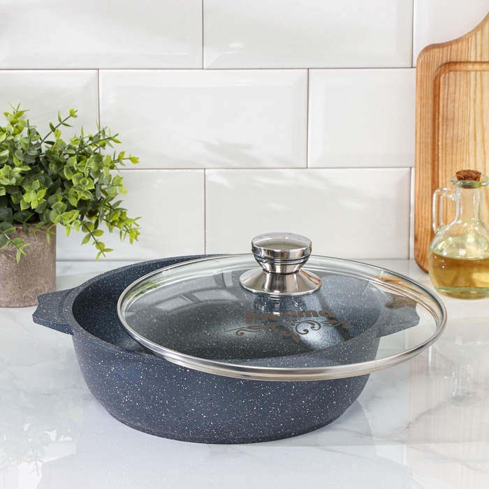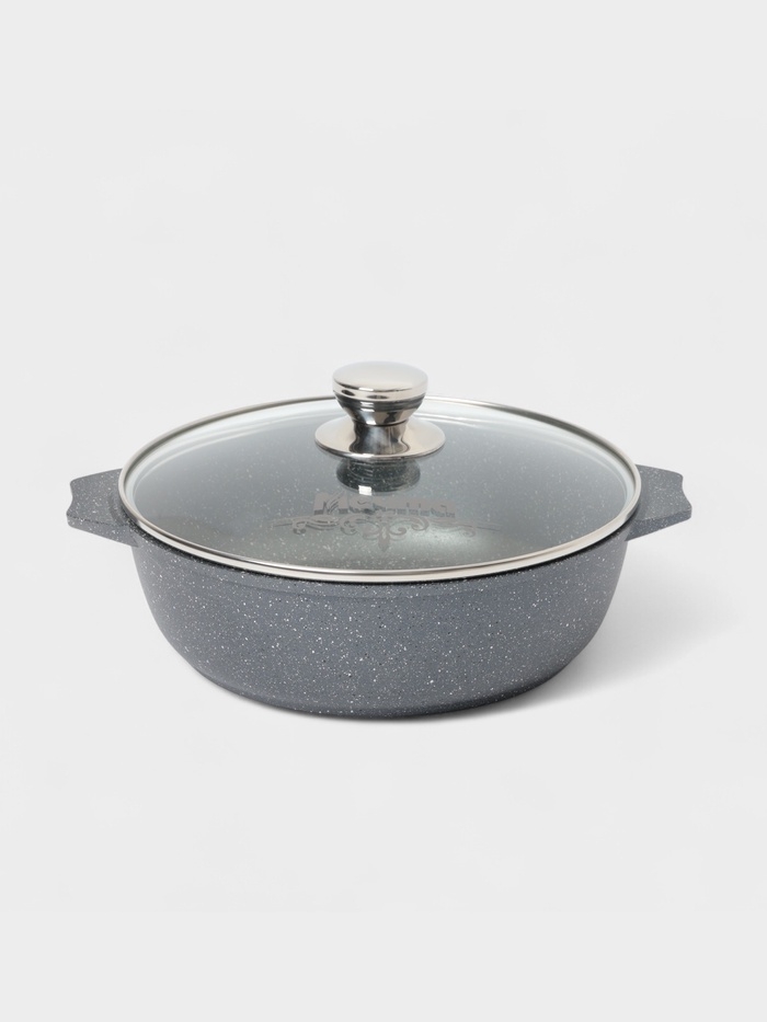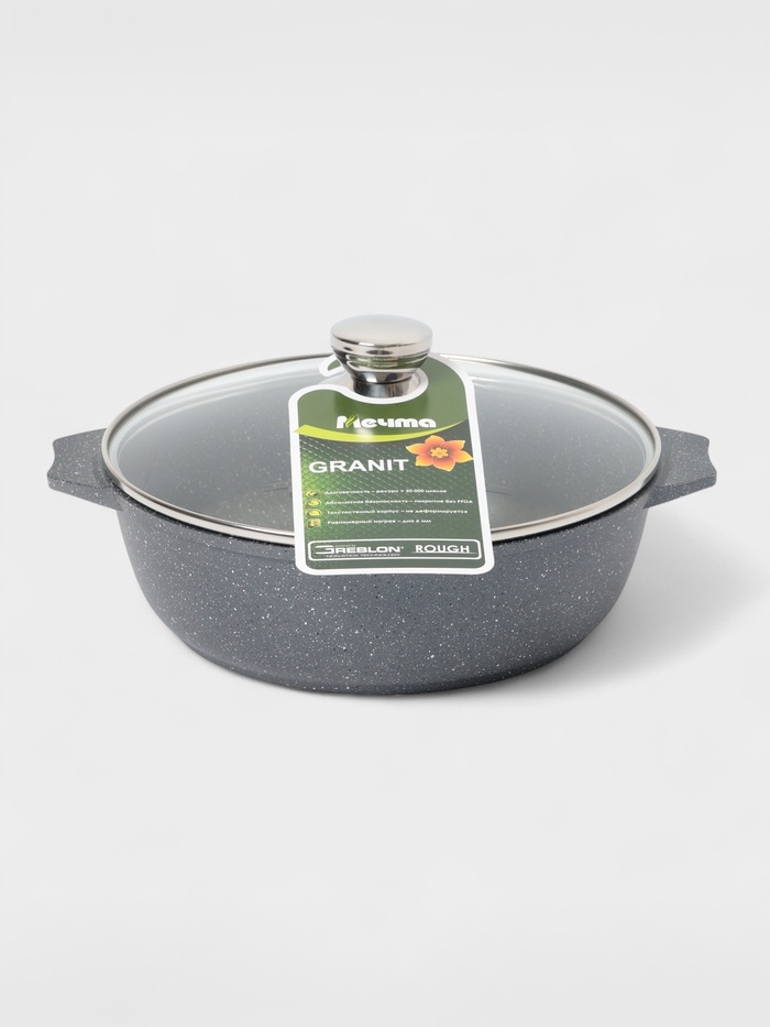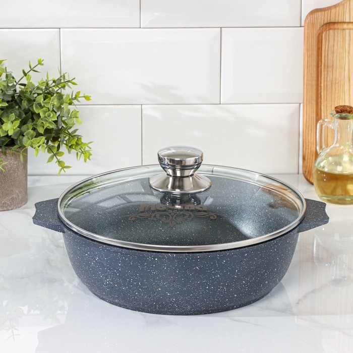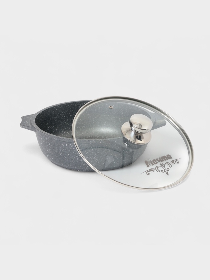 Жаровня Мечта «Гранит», 3 л, d=26 см, h=8 см, антипригарное покрытие, стеклянная крышка, серая