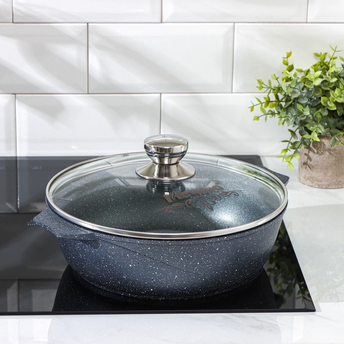 Жаровня «Гранит Black» Induction Pro, 3 л, d=28 см, стеклянная крышка, антипригарное покрытие, индукция, цвет чёрный