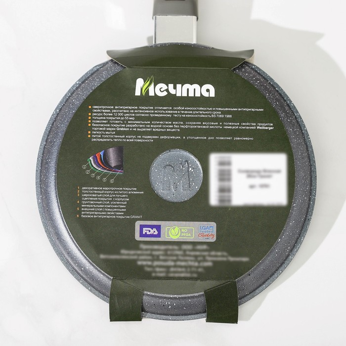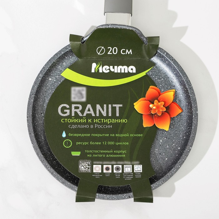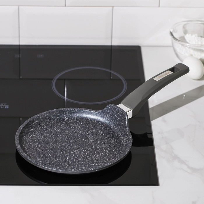 Сковорода блинная «Гранит», d=20 см, пластиковая ручка, антипригарное покрытие, цвет серый