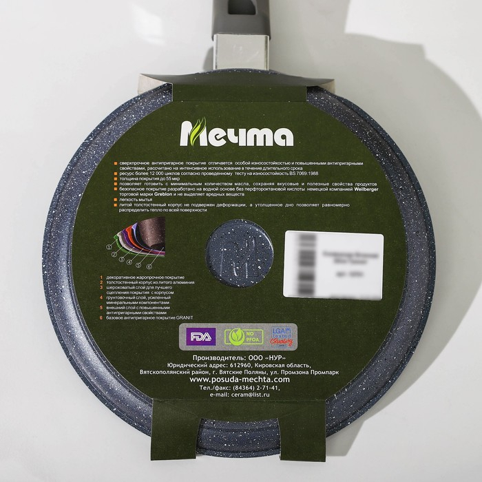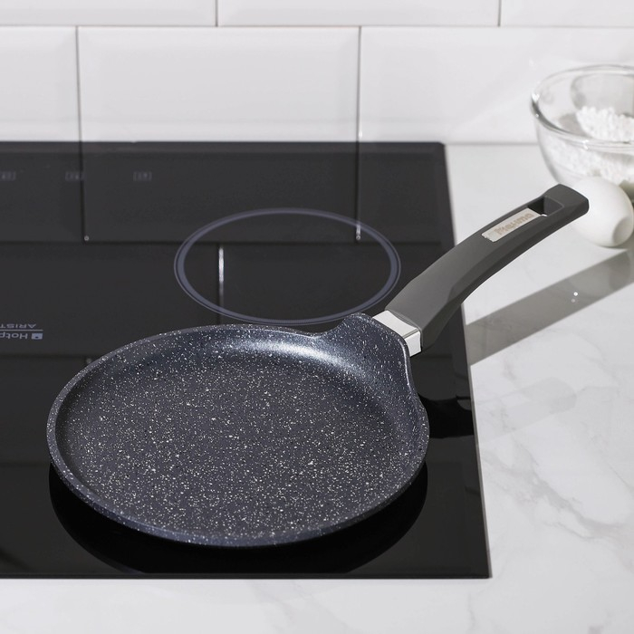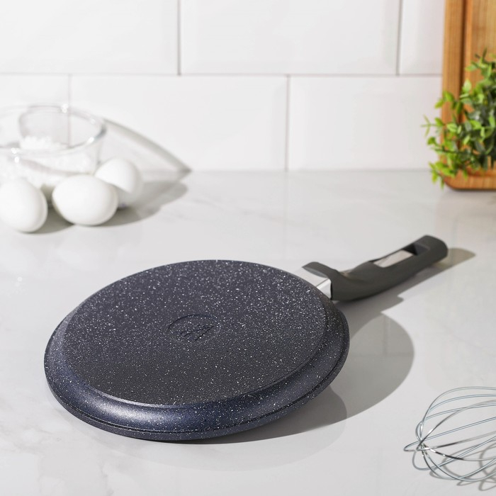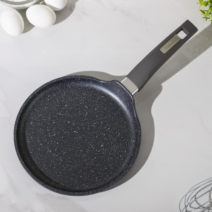 Сковорода блинная «Гранит», d=22 см, пластиковая ручка, антипригарное покрытие, цвет серый