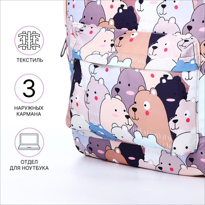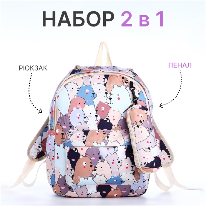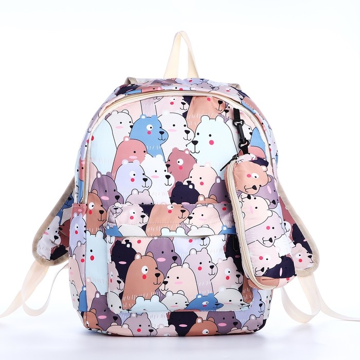 Рюкзак школьный из текстиля на молнии, 3 кармана, пенал, цвет разноцветный