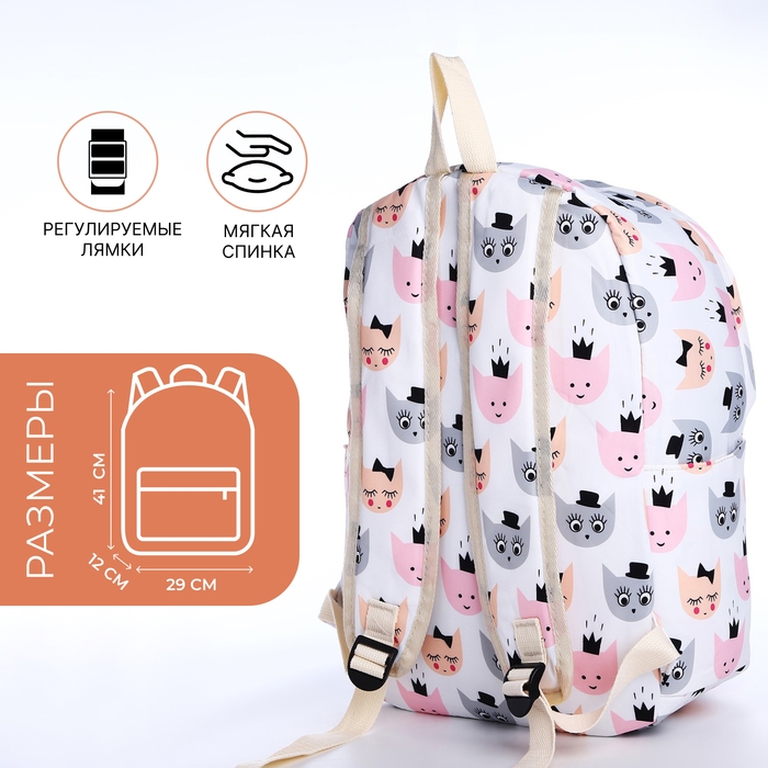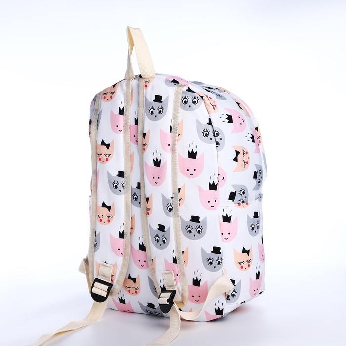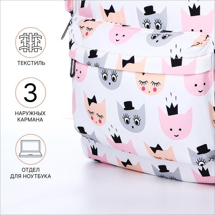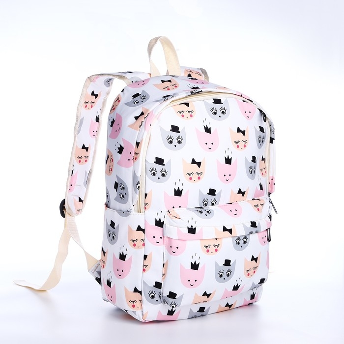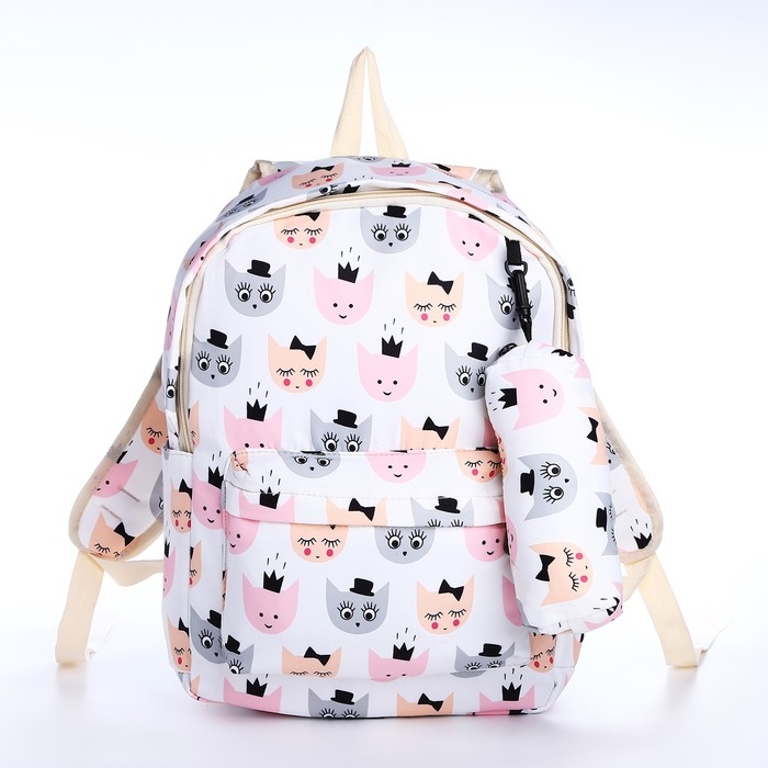 Рюкзак школьный из текстиля на молнии, 3 кармана, пенал, цвет белый/разноцветный