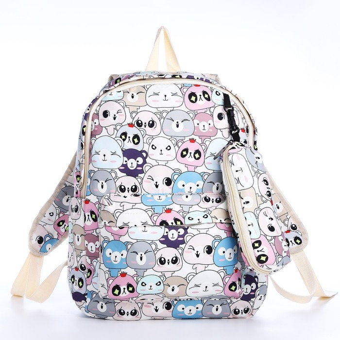 Рюкзак школьный из текстиля на молнии, 3 кармана, пенал, цвет разноцветный