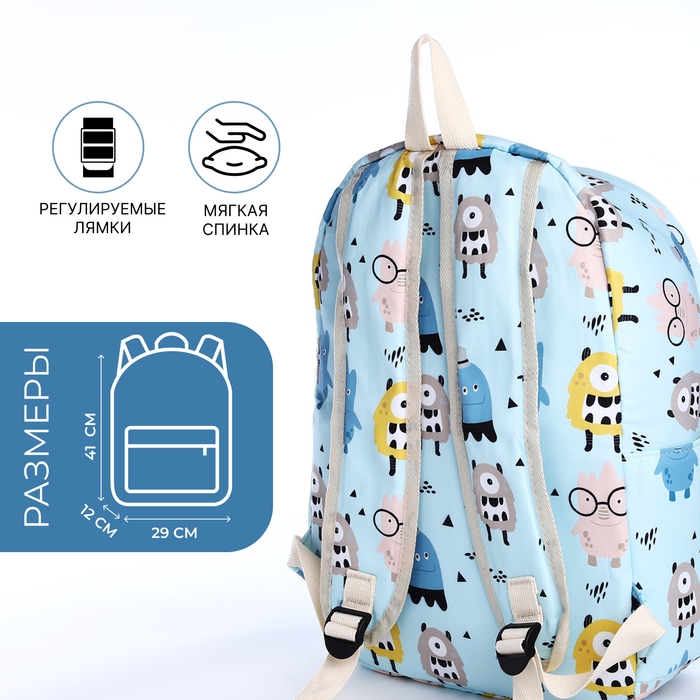 Рюкзак школьный из текстиля на молнии, 3 кармана, пенал, цвет голубой