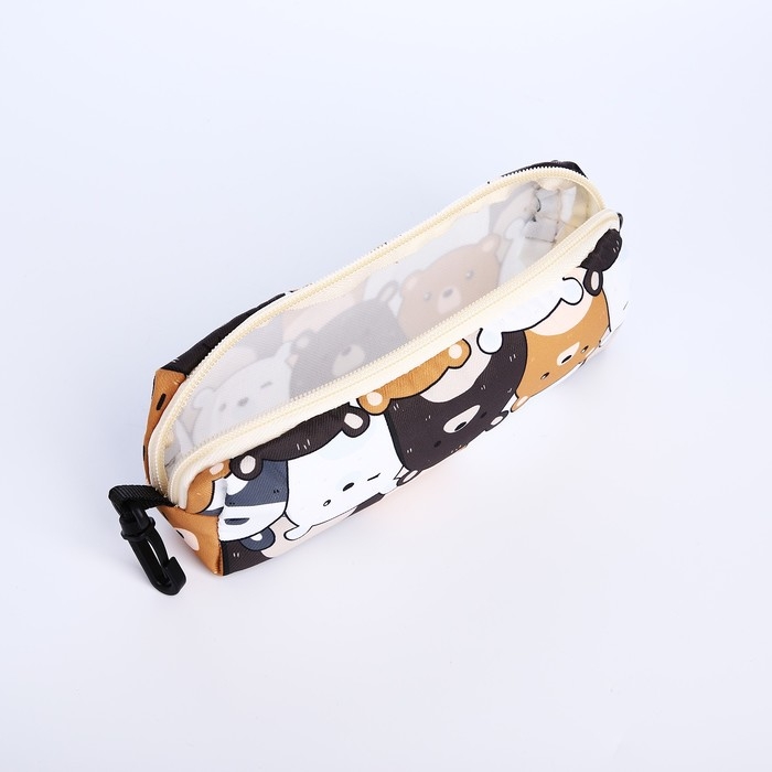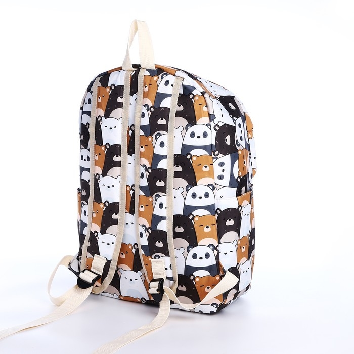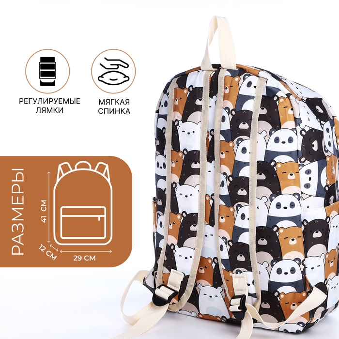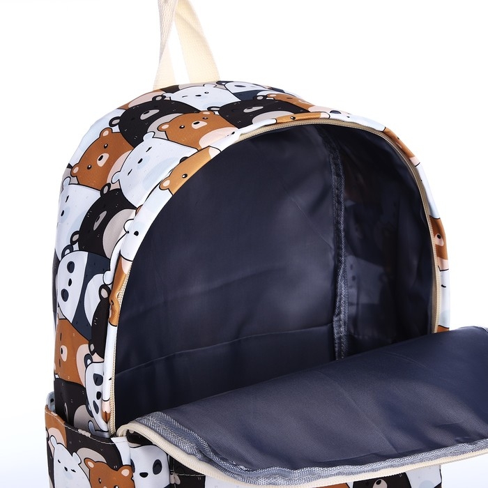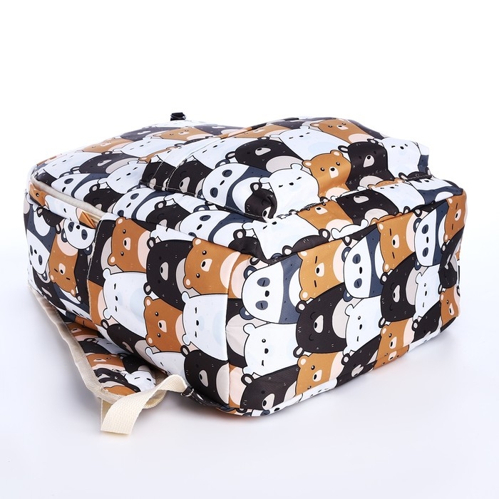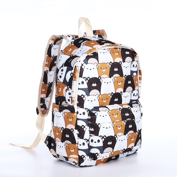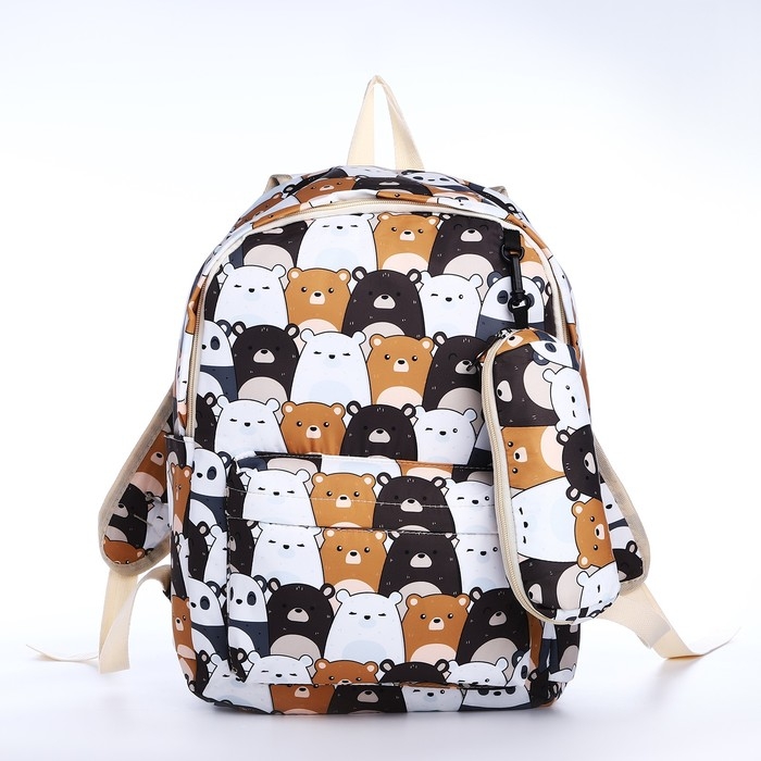 Рюкзак школьный из текстиля на молнии, 3 кармана, пенал, цвет белый/коричневый