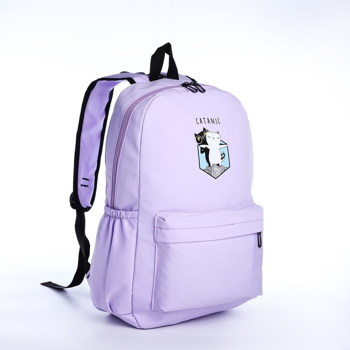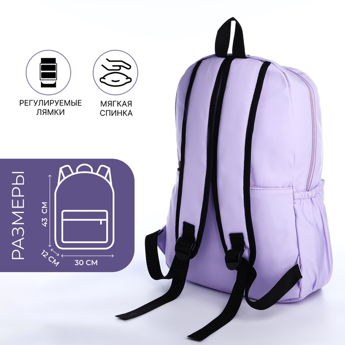 Рюкзак школьный из текстиля на молнии, 3 кармана, цвет сиреневый