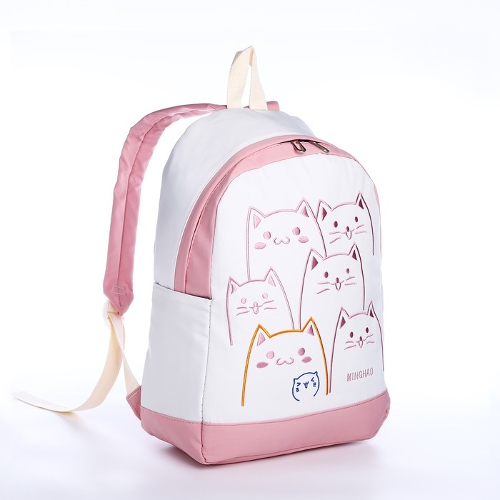 Рюкзак школьный из текстиля на молнии, 3 кармана, цвет розовый