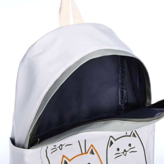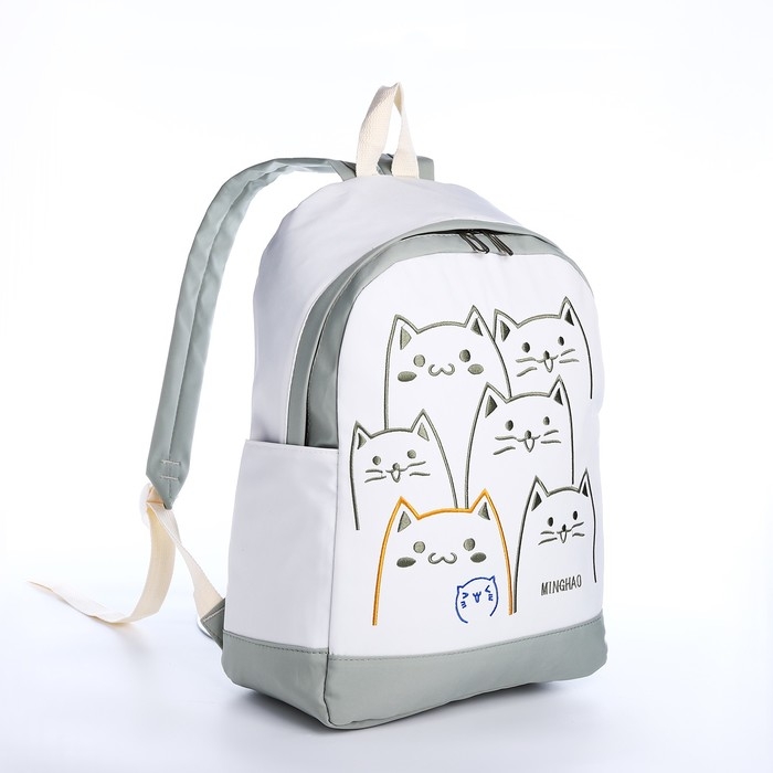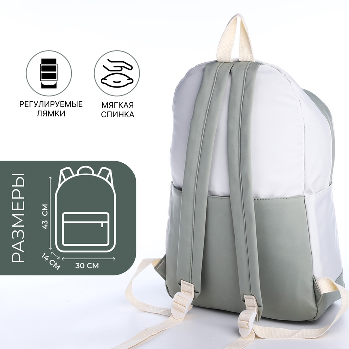 Рюкзак школьный из текстиля на молнии, 4 кармана, цвет зелёный/белый