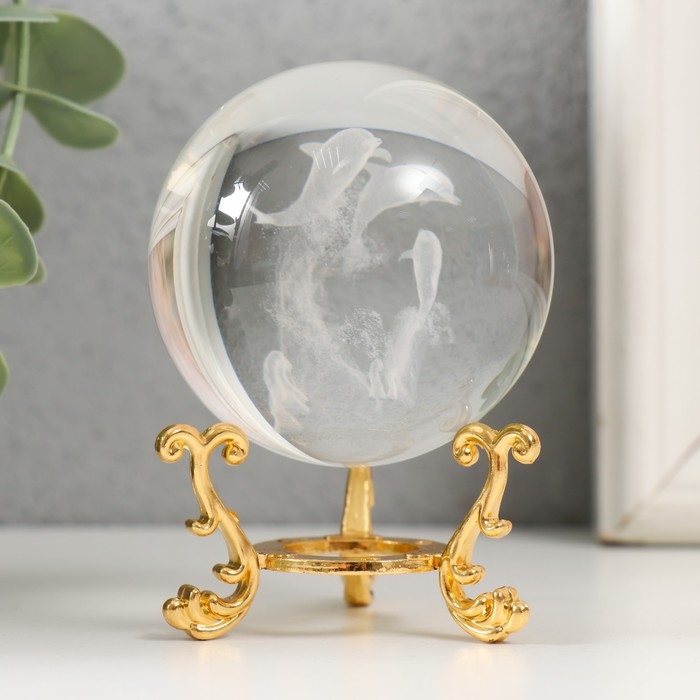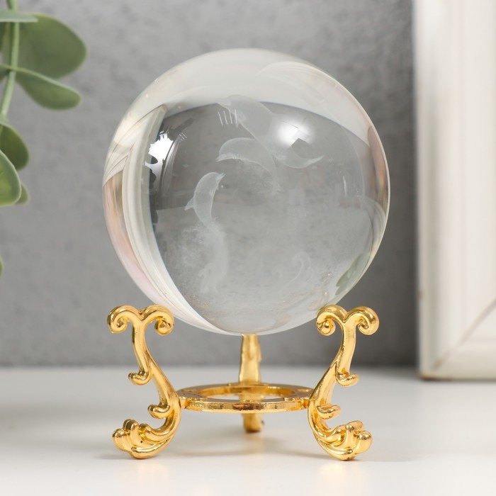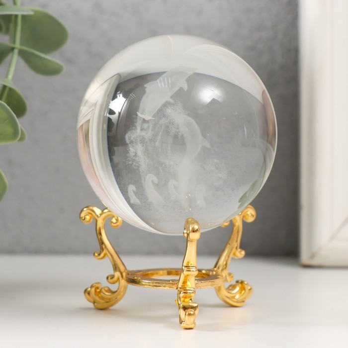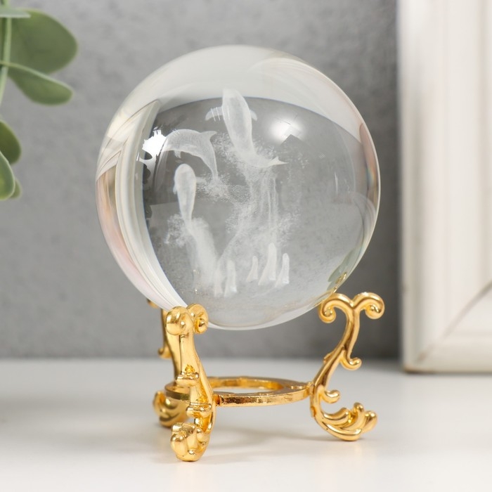 Сувенир стекло "Дельфины" d=6 см ажурная подставка 8,5х6х6 см