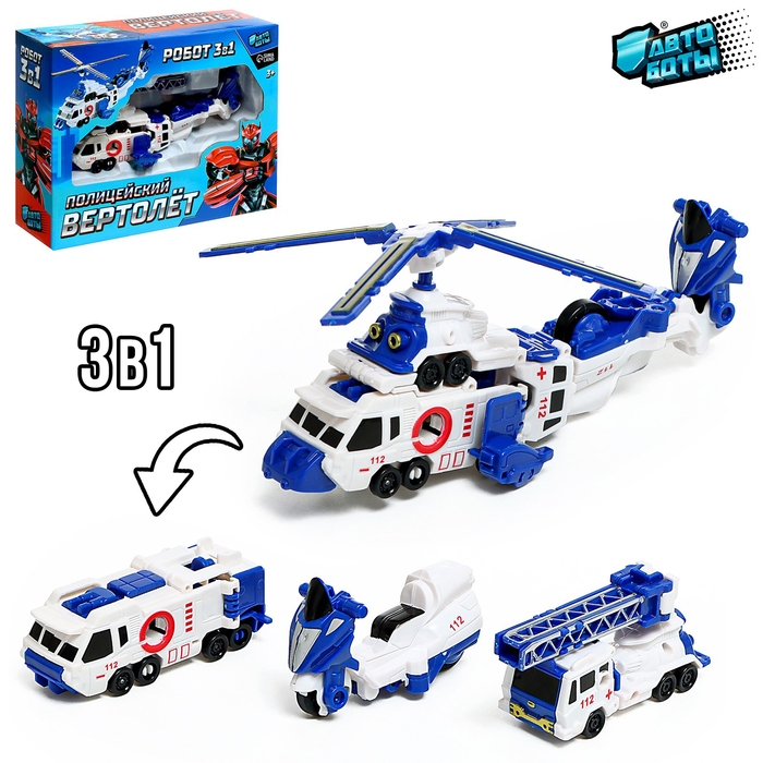 Робот «Полицейский вертолёт» теперь преследует врага не только в воздухе, но и на суше! Ведь легко может трансформироваться из огромного летательного аппарата в целых три транспортных средства: скутер, бронемашину и грузовик! С «Полицейским вертолётом» можно играть дома и брать с собой на прогулку. Ребёнок сможет не только увлекательно провести время за игрой, но также придумать новые сюжеты, развить фантазию и воображение. А яркий дизайн и проработанные детали сделают игру динамичнее и интереснее.