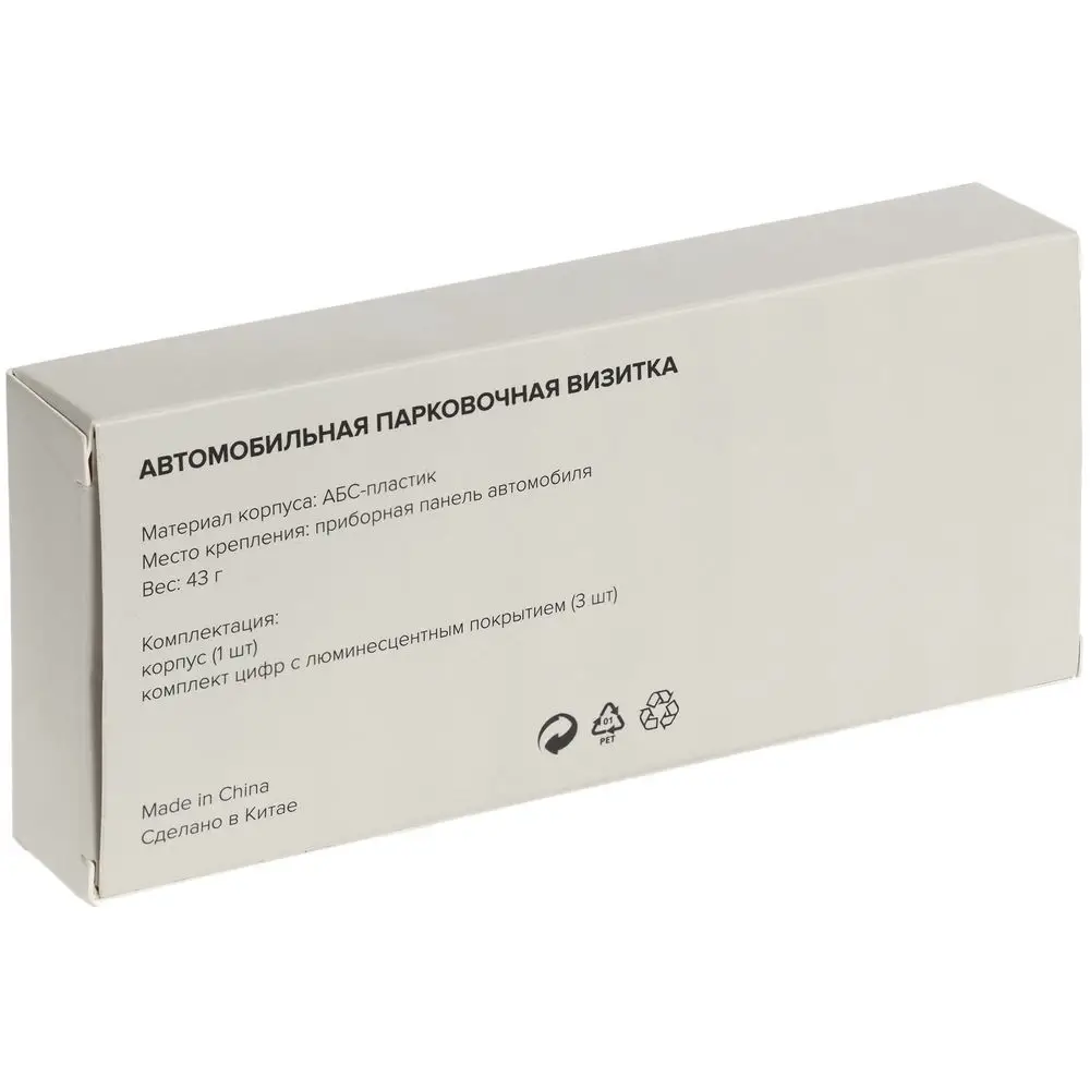 В наборе подставка с клейким основанием и комплект магнитных символов — при изменении номера телефона данные на визитке легко скорректировать.