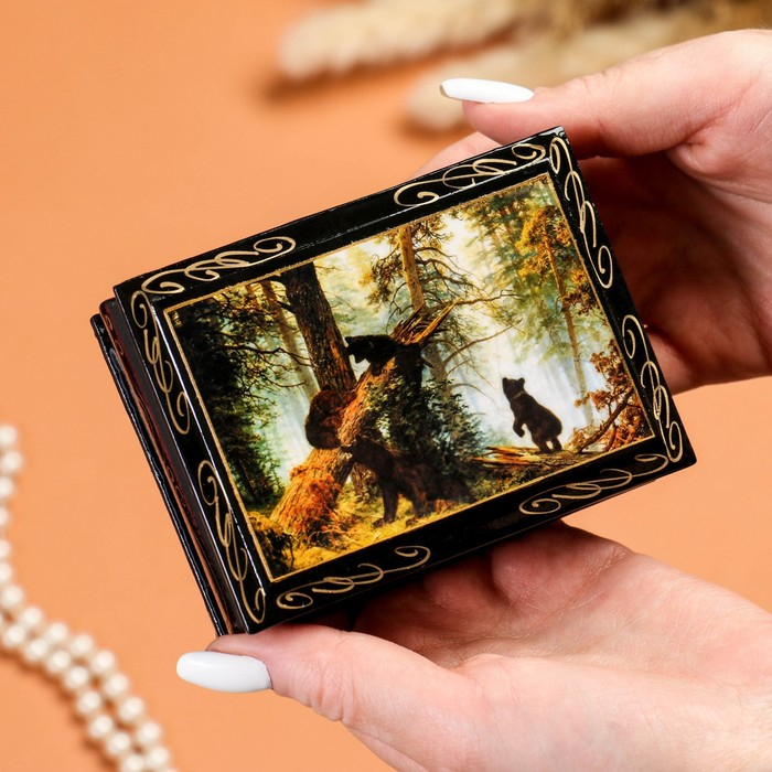Шкатулка «Мишки», 7,5×10 см, лаковая миниатюра