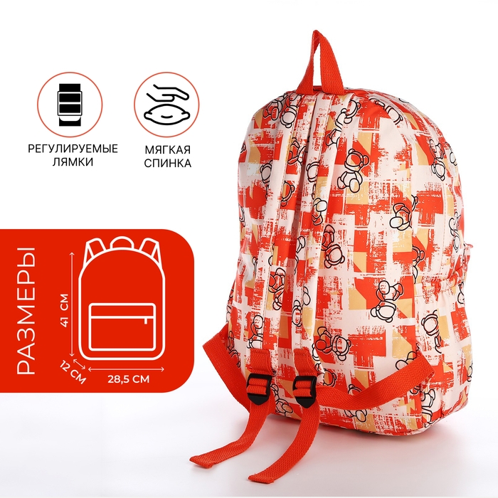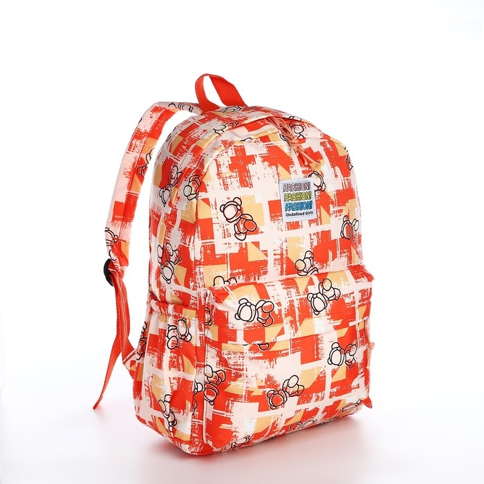 Рюкзак школьный из текстиля на молнии, 3 кармана, цвет оранжевый