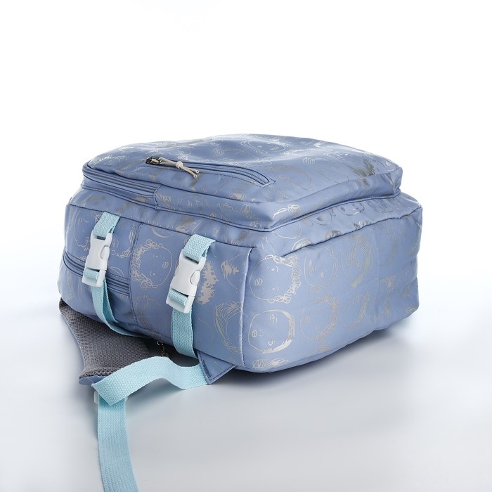 Рюкзак школьный из текстиля 2 отдела на молнии, 4 кармана, цвет голубой
