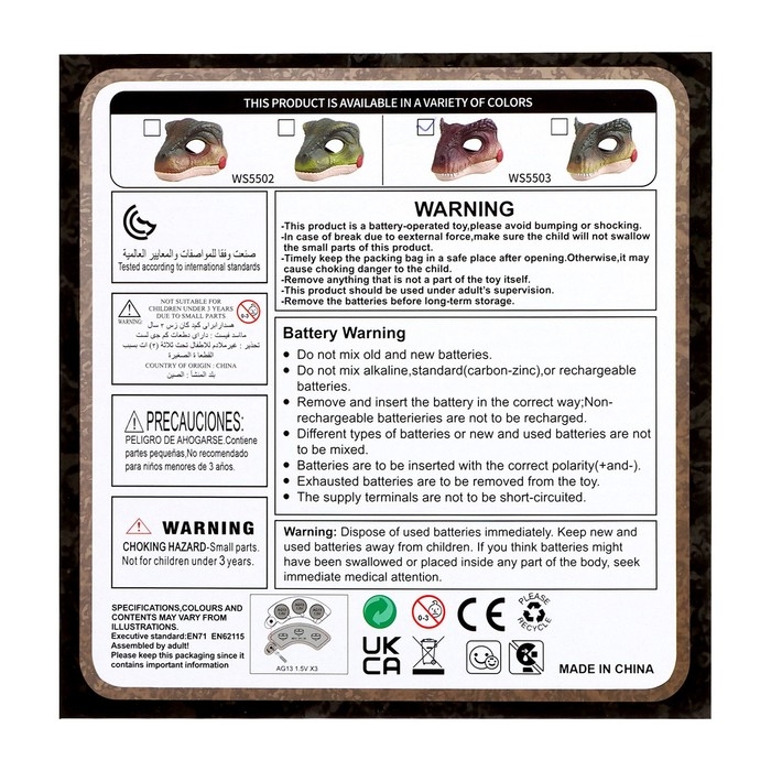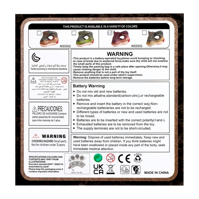 Интерактивная маска динозавра «Раптор», звуковые эффекты, работает от батареек