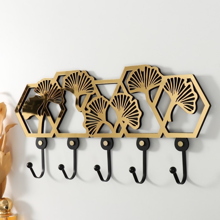 Крючки декоративные дерево "Листья-веер" чёрный, зеркальный 4,5х42,5х20,3 см