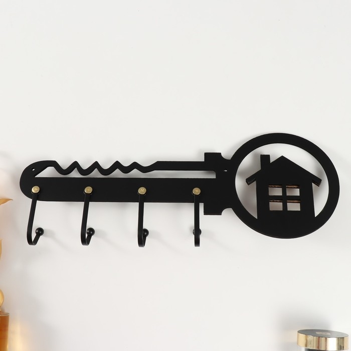 Крючки декоративные дерево "Ключ от дома" чёрный, зеркальный 4,5х40,5х14,5 см