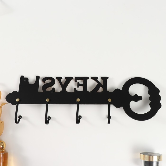 Крючки декоративные дерево "Ключ" чёрный, зеркальный 4,5х45х15 см