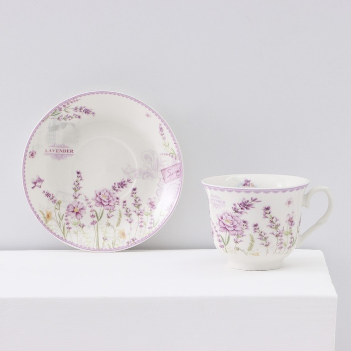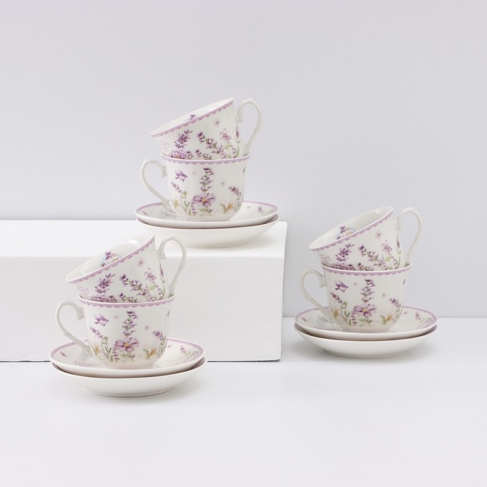 Чайный сервиз керамический «Прованс», 12 предметов: 6 чашек 200 мл, 6 блюдец d=13,5 см