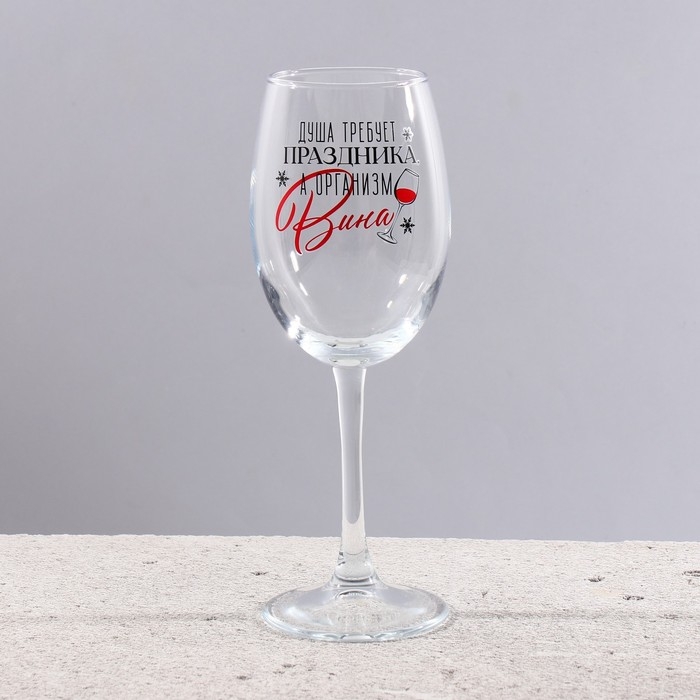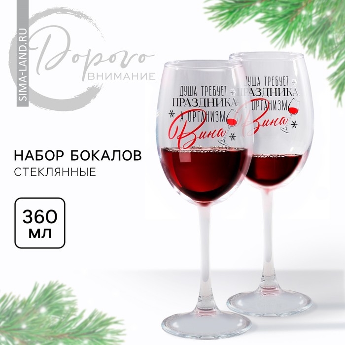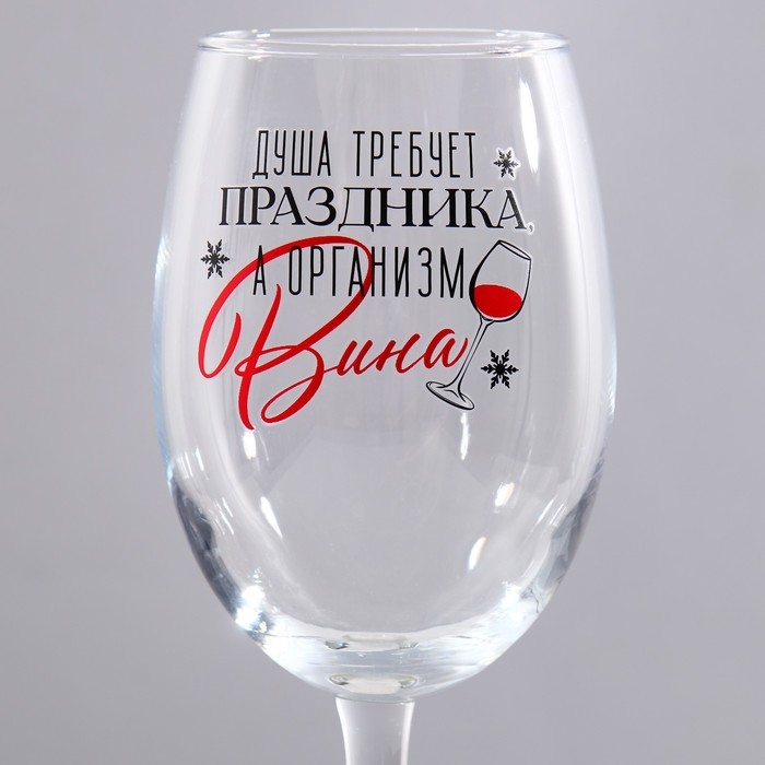 Бокалы для вина «Душа требует праздника», подарочный набор на Новый год, 360 мл, 2 шт