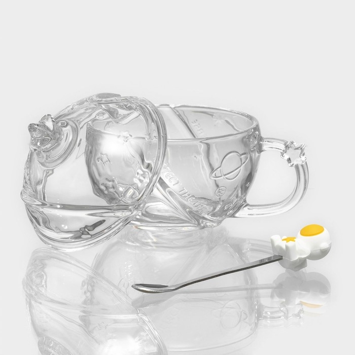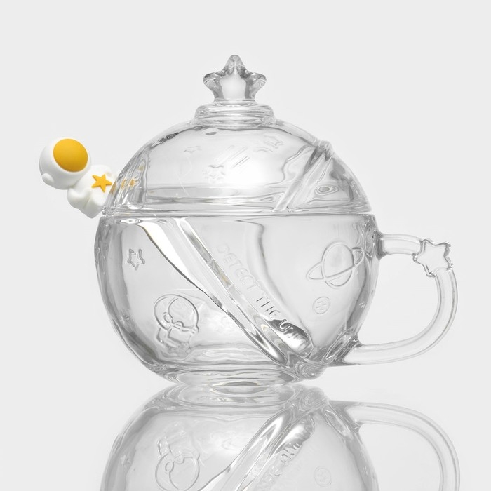 Кружка стеклянная с крышкой и ложкой «Космос», 350 мл