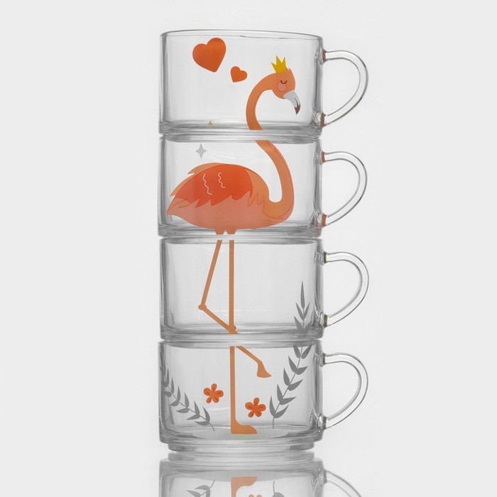 Набор кружек стеклянных «Фламинго», 4 предмета: 420 мл