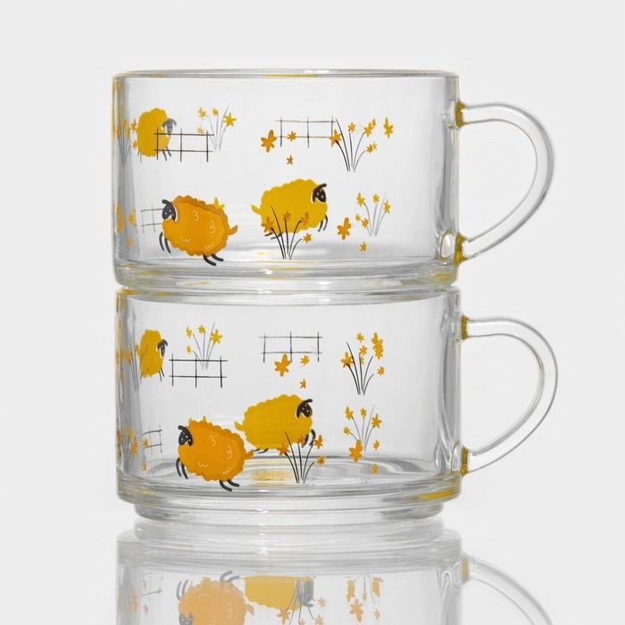 Набор стеклянных кружек «Весна» выполнен из экологичного материала, имеет лаконичные формы и стильный анималистичный рисунок. Комплект кружек с жизнерадостными жёлтыми овечками станет отличным подарком для детей и взрослых.