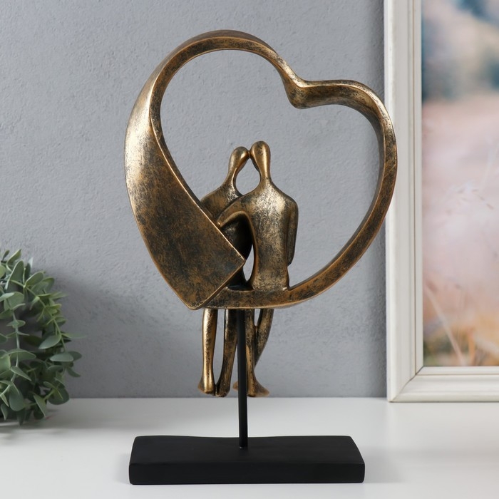 Сувенир полистоун "Двое в сердечке" под металл 19,4х10,4х31,5 см