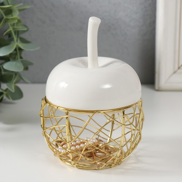 Шкатулка керамика, металл "Яблочко" белая 8,5х8,5х12 см