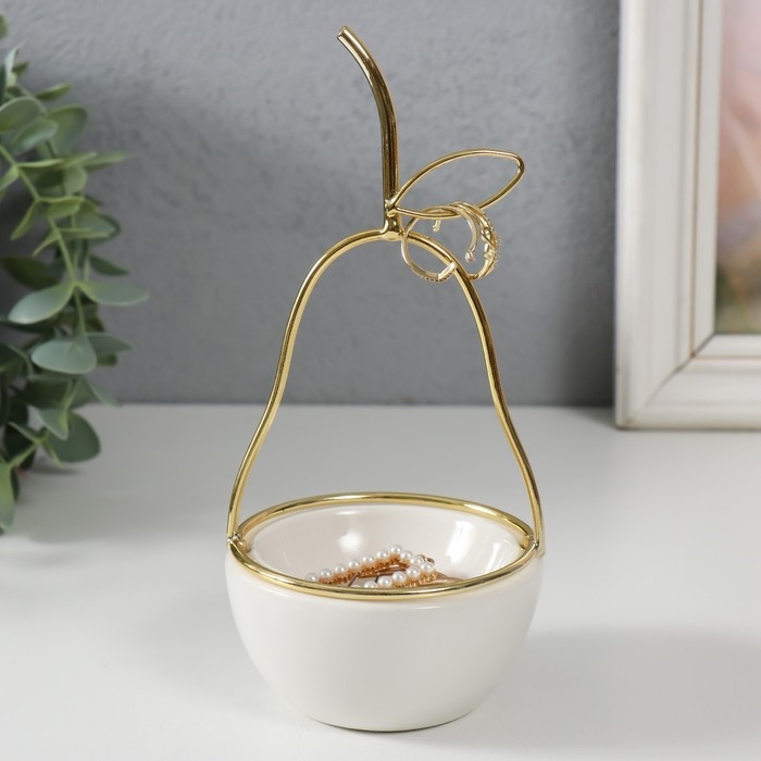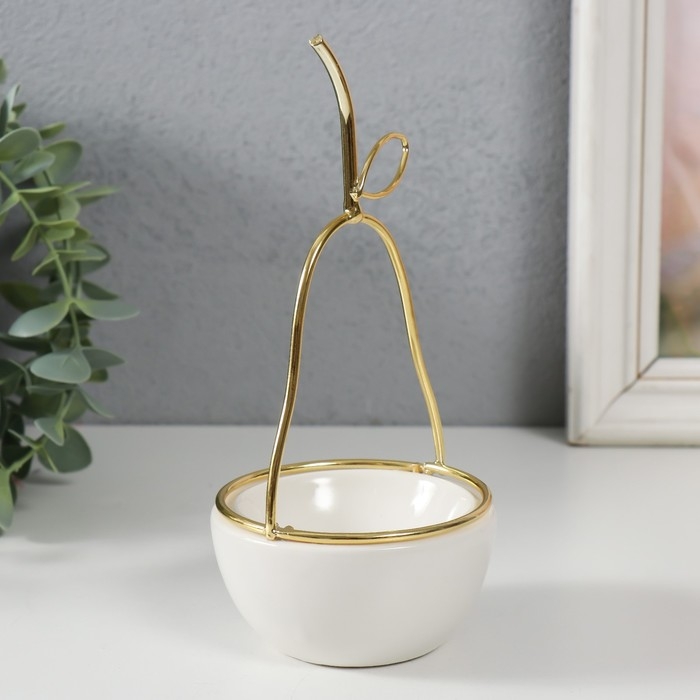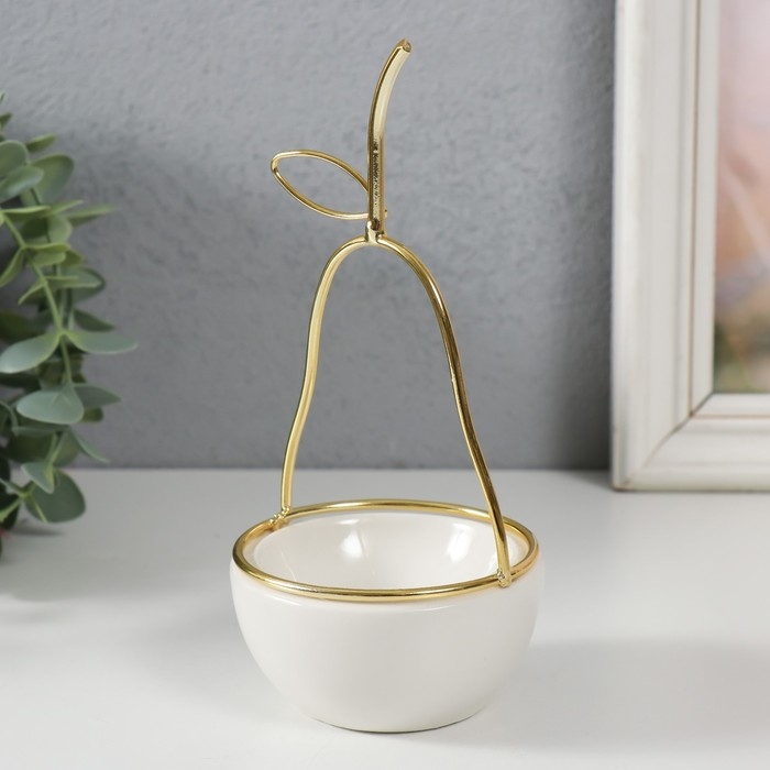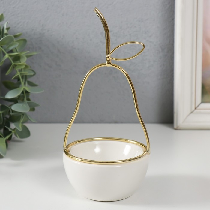 Сувенир керамика, металл подставка "Груша" белая с золотом 8х8х17 см