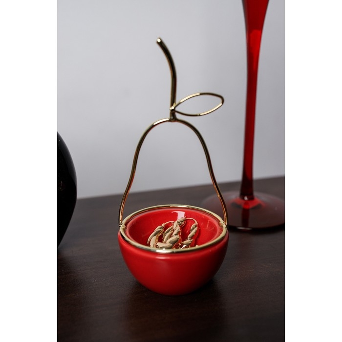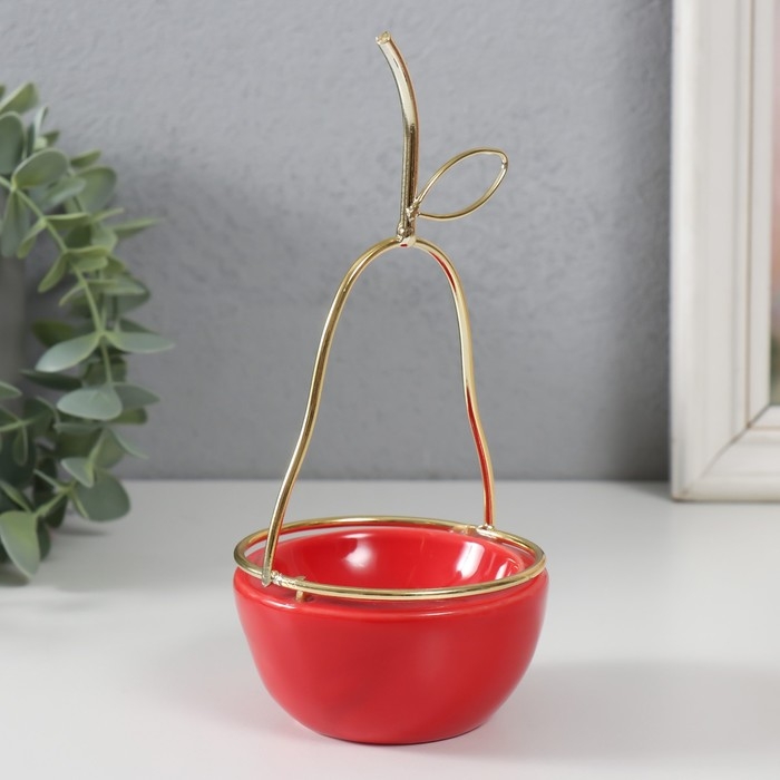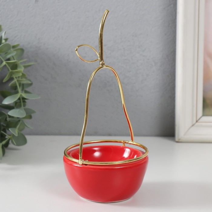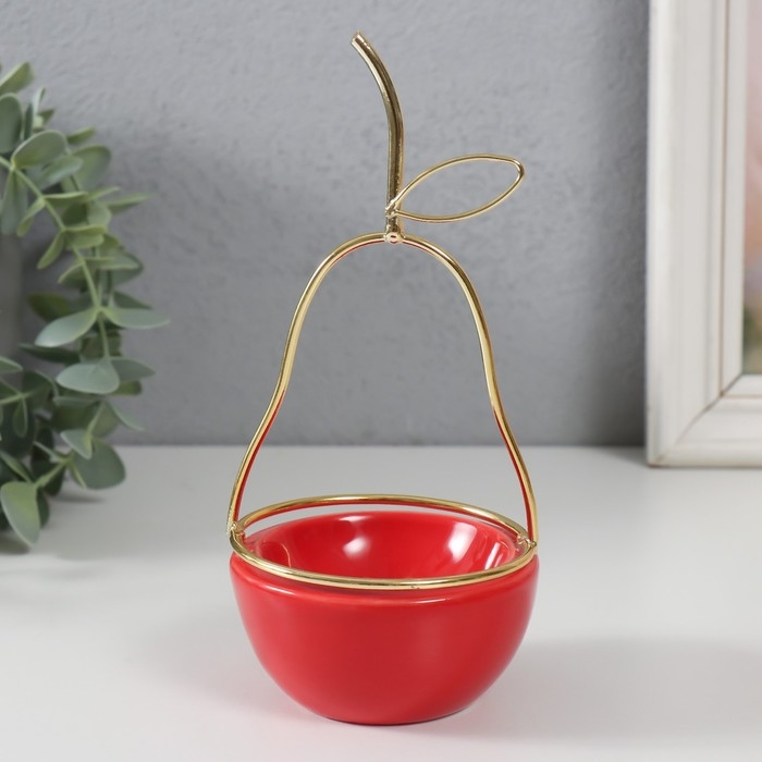 Сувенир керамика, металл подставка "Груша" красная с золотом 8х8х17 см