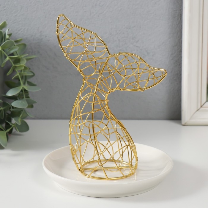 Сувенир металл, керамика подставка "Хвост кита" белый с золотом 14,2х14,2х17,3 см